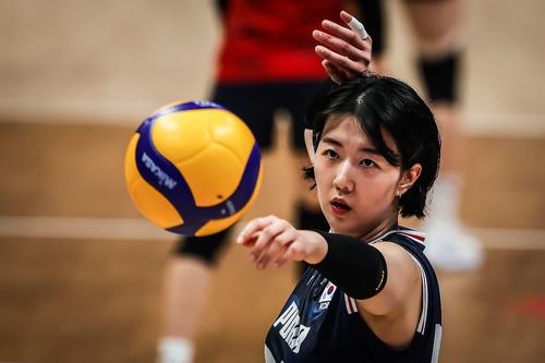 아포짓 스파이커 이선우(정관장)와 아웃사이드 히터 육서영의 활약으로 11-16으로 따라붙은 한국은 11-17에서 연속 5점을 헌납하면서 결국 세트를 잃었다.