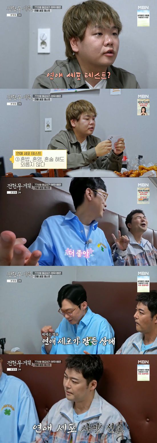 그러면서 곽튜브는 '연애 세포 테스트'를 진행하려고 했는데, 박병은은 "나는 연애세포가 정상"이라고 반박했다.