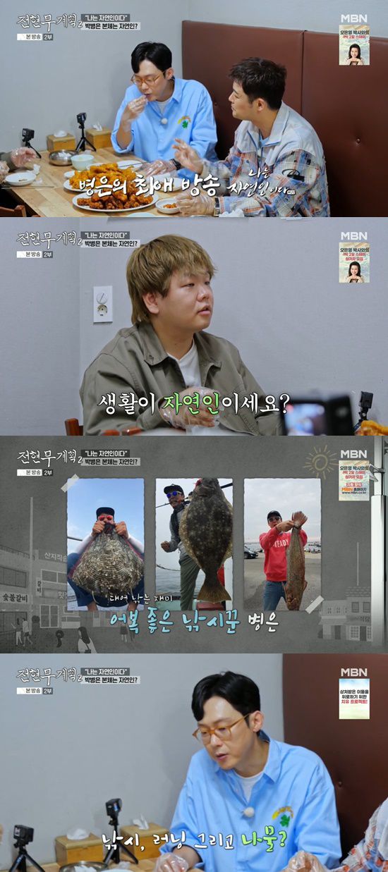 이날 대구의 한 치킨집을 찾아 먹방을 이어가던 이들은 서로의 관심사에 대해 이야기를 나눴다. 연예계 대표 낚시광으로 유명한 박병은은 낚시 뿐 아니라 러닝, 나물캐기까지 한다고 말했다. 그는 "진짜 나물을 이만큼 한 박스 따와서 어머니가 문화센터 차밍 댄스스쿨의 아주머니들께 나눠드렸다"고 전해 웃음을 줬다.