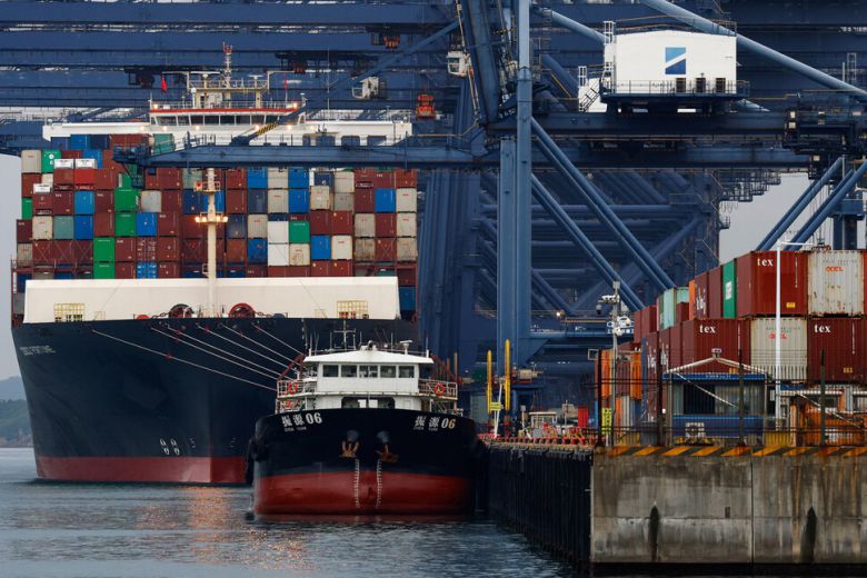 도널드 트럼프 정부의 관세정책 이후 2025년 4월 말 중국의 항구에서 미국으로 향하는 화물선은 4월 초보다 40% 줄었다. 2025년 5월9일 중국 광둥성 선전 옌톈항에 컨테이너를 실은 화물선이 정박해 있다. REUTERS