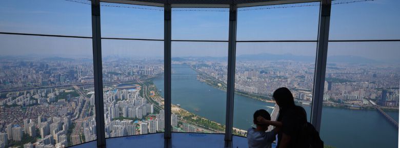 6일 서울 송파구 롯데월드타워에서 바라본 도심 위로 푸른 하늘이 펼쳐져 있다. 연합뉴스