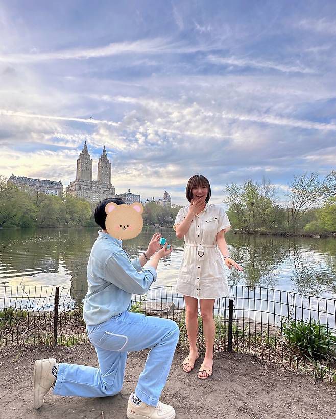 그런가 하면 "“Let’s go on a picnic” he said… And this!!"라며 뉴욕 센트럴파크에서 예비신랑에게 반지를 건네받는 현장을 공개했다. 예비신랑은 무릎을 꿇으며 민에게 프러포즈했고 민은 환하게 웃었다.