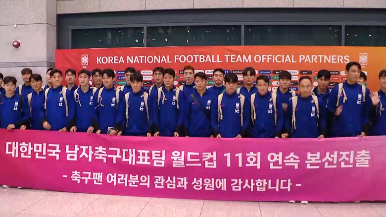 이라크를 꺾고 11회 연속 월드컵 본선 진출을 확정지은 우리나라 축구대표팀이 금의환향했습니다. 한국 축구의 새 역사를 쓴 태극전사들을 환영하기 위해 공항이 북적였는데요. 이초원 기자가 현장에 다녀왔습니다.