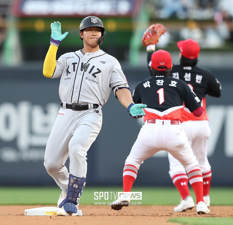 [스포티비뉴스=윤욱재 기자] '코리안 몬스터' 류현진(38·한화 이글스)의 시속 148km 직구를 공략해 데뷔 첫 두 자릿수 홈런을 채우더니 다음 날에는 3안타 경기를 펼치며 쾌조의 타격감을 이어갔다.