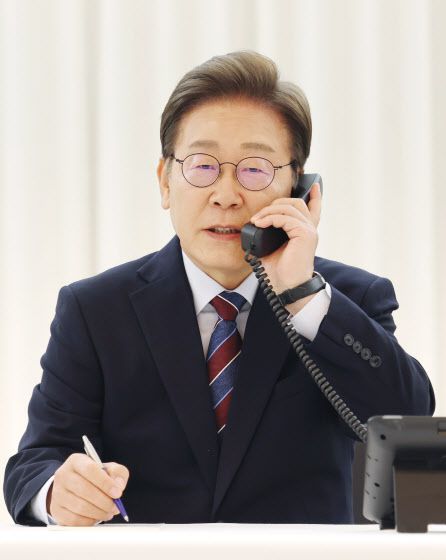이재명 대통령이 지난 6일 서울 한남동 관저에서 도널드 트럼프 미국 대통령과 전화 통화를 하기 위해 수화기를 들고 있다. (사진=연합뉴스) |