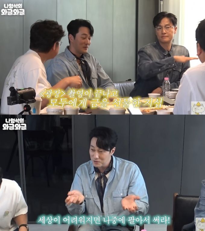 그는 "늘 촬영이 끝나면 스태프와 배우들에게 선물을 해왔다. 사비로 준비했는데 다들 협찬인 줄 알더라. 금은 협찬도 없다. 세상이 어려워지면 나중에 팔아서 쓰라는 뜻이었다"고 설명했다.