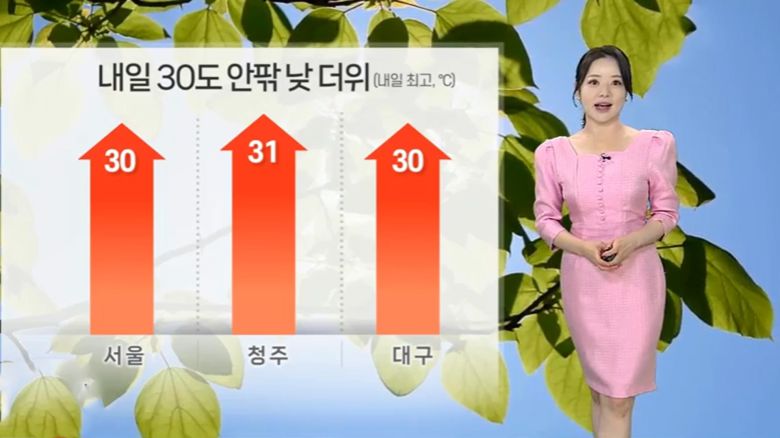 내일 서울의 낮 최고 기온이 30도까지 오르겠고요. 청주 31도, 대구는 30도가 예상됩니다.