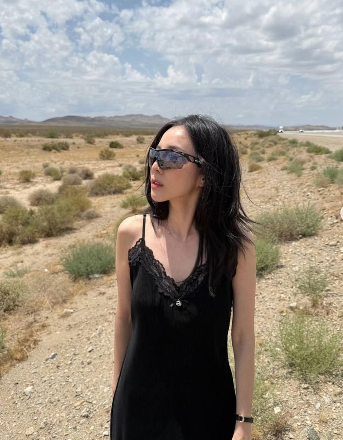 사진 속 산다라박은 블랙 슬립 원피스에 선글라스를 매치해 고혹적인 자태를 뽐냈다.