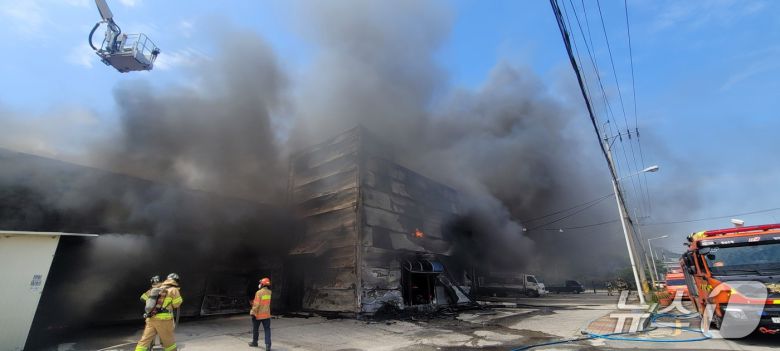 7일 오후 1시 8분쯤 경남 양산시 동면 여락리의 한 공장 창고에서 불이나 소방관들이 진화에 나서고 있다.(경남소방본부 제공. 재판매 및 DB금지) |