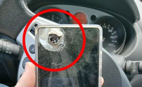 그는 “포격을 당하던 도중에 큰 파편이 휴대전화를 직격했다. 파편이 액정화면을 뚫었지만, 티타늄 케이스에 막혔다”라고 썼다.