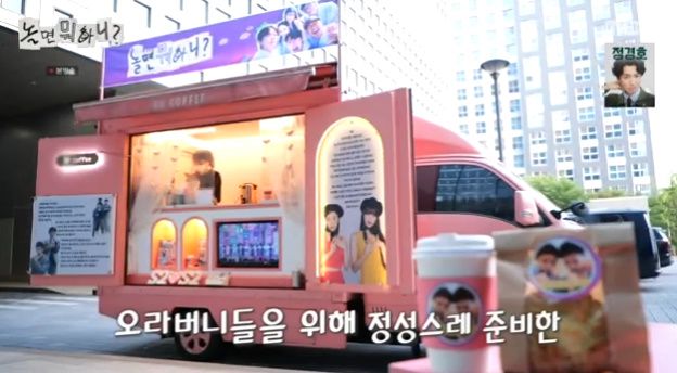 해당 커피차는 최근 하차한 박진주, 이미주가 보낸 것. 커피차에는 '놀면 뭐하니?' 6인 포스터와 함께 박진주, 이미주의 사진과 응원글이 빼곡히 담겼다.
