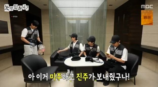이후 멤버들 몫의 음료와 간식을 챙긴 이이경은 카메라를 향해 "미주 진주야 잘 먹을게. 형들 잘 갖다주고 올게!"라고 인사를 전하기도 했다.