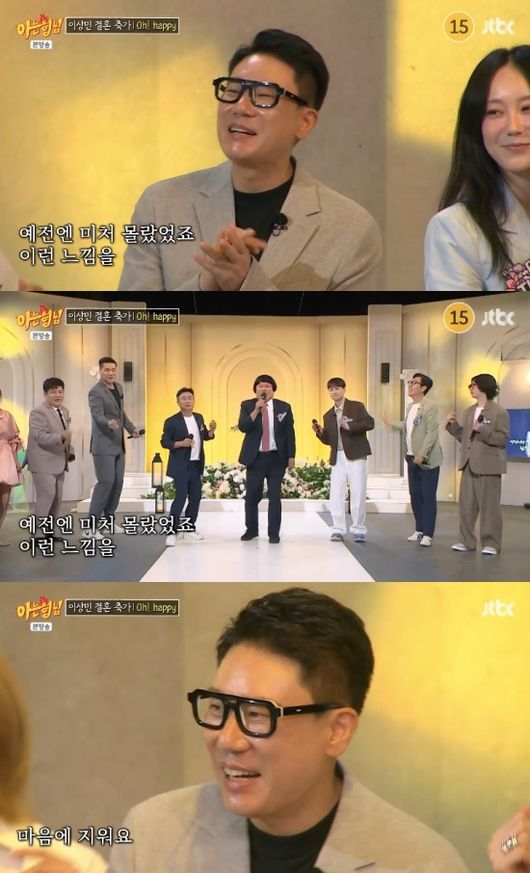 7일 방송된 JTBC 예능 ‘아는 형님’(이하 아형)은 이상민의 결혼을 기념한 특별한 피로연이 진행, 룰라의 김지현, 채리나, 디바 김진, 샵 출신 이지혜 등 이상민의 오랜 동료들이 총출동해 축하의 뜻을 전했다.