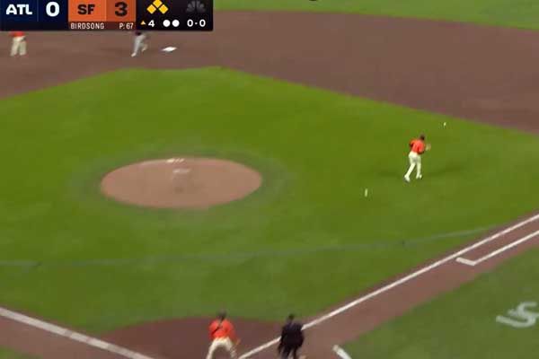 8일(한국시간) 오라클파크에서 열린 애틀란타 브레이브스와 샌프란시스코 경기에서 나온 장면이다.