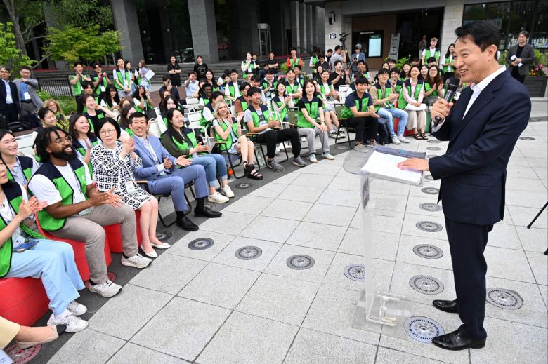 [헤럴드경제=손인규 기자] 오세훈 서울시장이 8일 오전 9시 국가보훈부 주관 ‘유엔참전국 후손 교류캠프’에 참가 중인 130명을 광화문광장으로 초청해 서울시가 조성 중인 ‘감사의 정원’의 의미를 설명하고 자유와 평화의 가치를 공유했다.