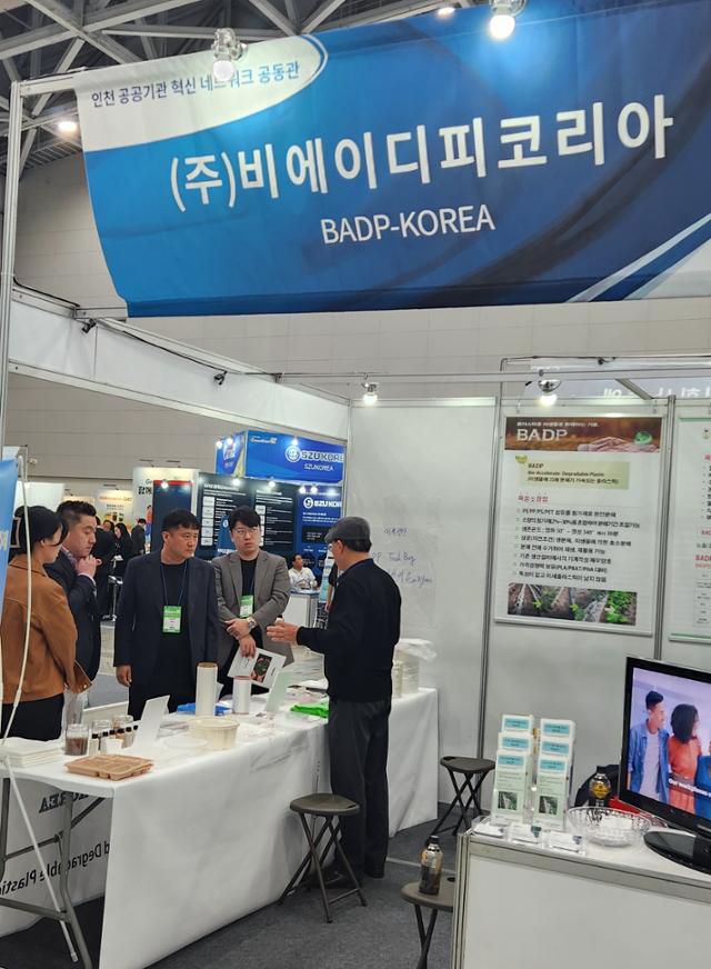 비에이디피코리아가 지난해 10월 30일 인천 송도컨벤시아에서 개막한 국내 최대 친환경 플라스틱 박람회 '2024 그린에너텍' 부스에서 자사 제품을 홍보하고 있다. 비에이디피코리아 제공 |