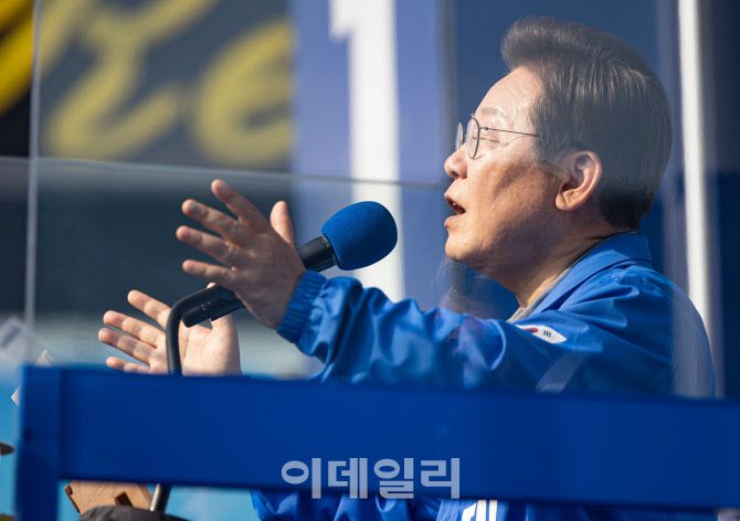 이재명 당시 더불어민주당 대통령 후보가 지난 1일 오전 울산 동구 일산해수욕장 로터리에서 시민들에게 지지를 호소하고 있다. |
