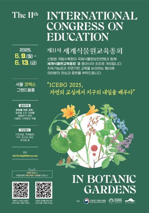세계식물원교육총회는 115개국 약 900개 수목원·식물원과 관련 기관이 가입된 국제식물원보전연맹이 3∼4년 주기로 개최하는 국제회의로, 동아시아에서 개최되기는 이번이 처음입니다.