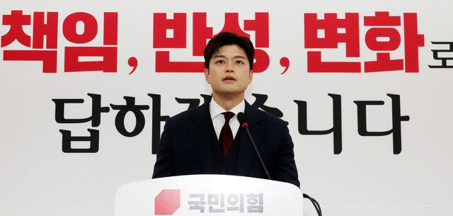 김용태 국민의힘 비상대책위원장이 8일 국회에서 열린 현안관련 기자회견에서 발언하고 있다. 김경호 선임기자 jijae@hani.co.kr |