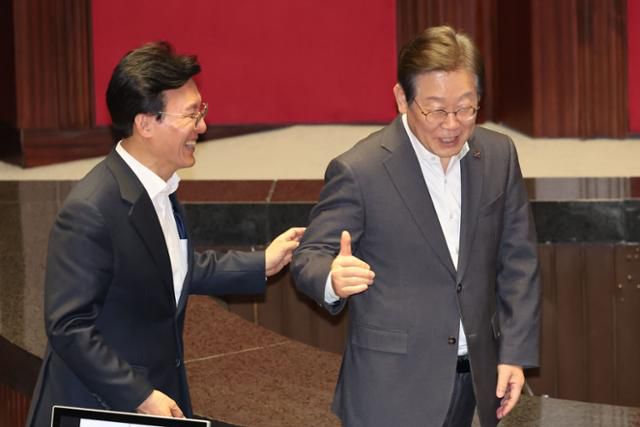 이재명 대통령이 올해 4월 서울 여의도 국회에서 열린 제424회 국회(임시회) 제5차 본회의에서 상법 개정안과 내란·명태균 특검법 등 재의요구 안에 대한 재표결 투표를 한 뒤 '따봉'을 하고 있다. 뉴시스
