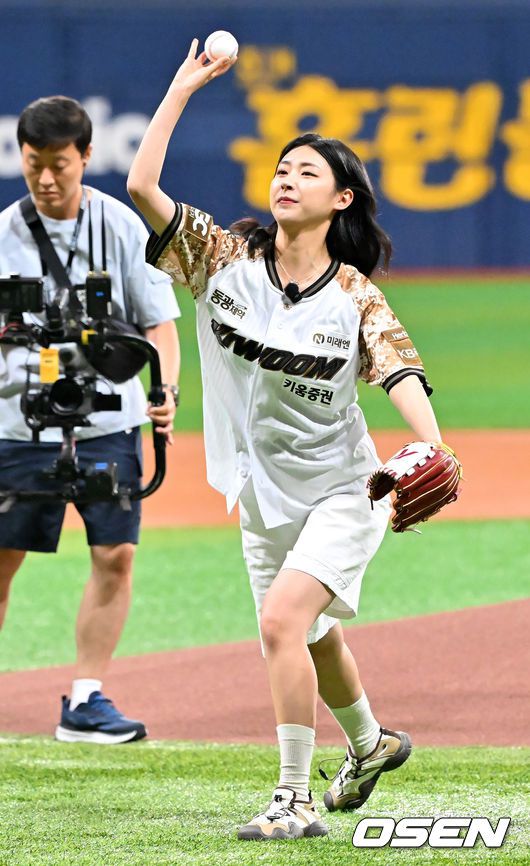 이날 그는 흰색 반바지와 키움 히어로즈 유니폼을 착용하고 등장해 단아하면서도 발랄한 매력을 뽐냈다. 긴 웨이브 헤어스타일과 자연스러운 미소, 안정적인 투구폼까지 더해지며 관중들의 뜨거운 관심을 받았다.