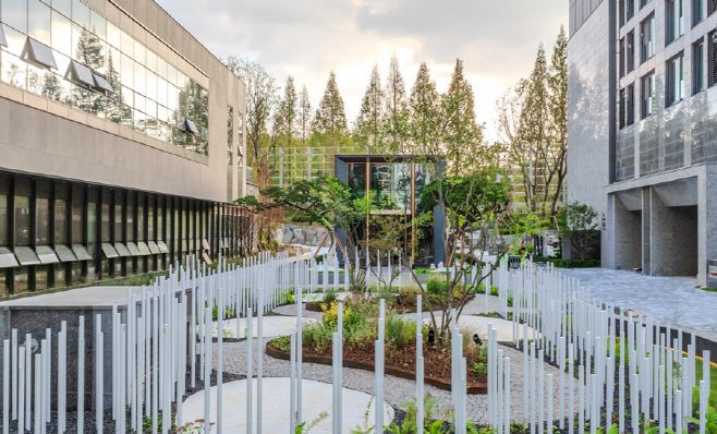 대우건설은 이 프로젝트에서 '돌과 빛의 숲'이라는 주제로 자연과 시간을 어울려 만든 조화로운 경관의 정원을 조성했다. △일상의 환희 △시간의 결 △은유의 풍경 △삶의 관조 △함께하는 즐거움이라는 다섯 가지 테마로 정원을 조성해 자연 속에서 휴식과 사색을 즐기길 원하는 이들의 시선을 사로잡았다.