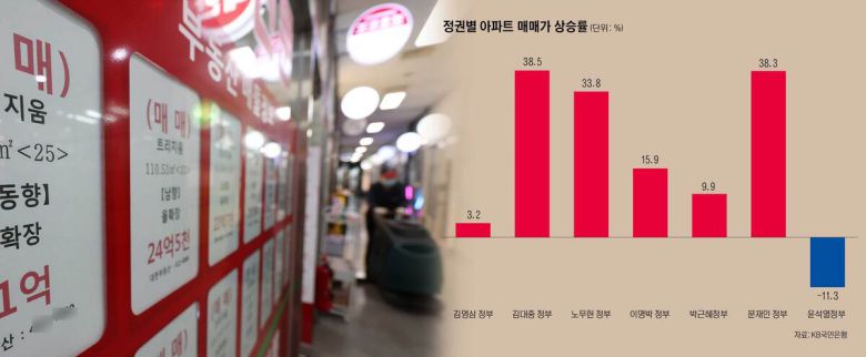 문재인 정부는 다주택자에 대한 징벌적 조세정책을 시행했지만 풍선효과만 가져왔을뿐이다. 실제로 업계에서는 ‘민주당이 집권하면 집값이 오른다’는 말이 나오곤 했다. 한 민간업체의 조사 자료에 따르면 노무현 정부 당시 60%, 문재인 정부 때는 70% 이상 집값이 올랐다. 세금 인상 및 대출 조이기가 주원인으로 지목된 만큼 이번에는 다른 행보를 보여줄지 주목된다.
