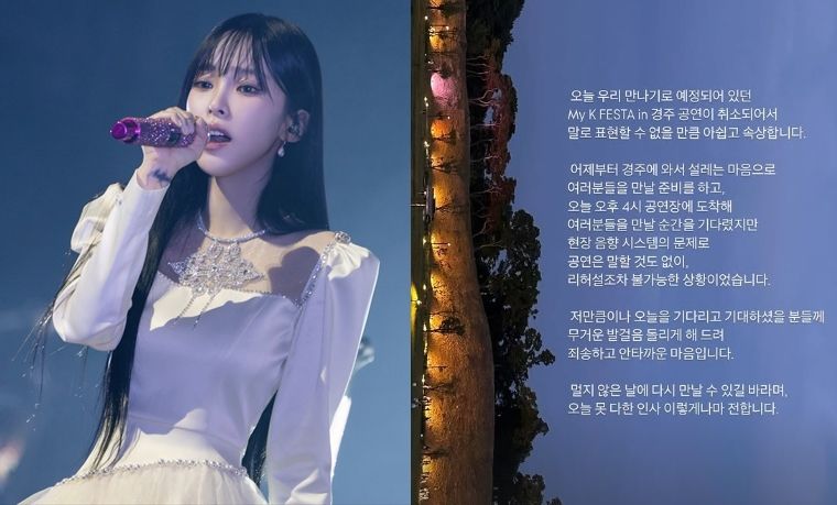 이어 “어제부터 경주에 와서 설레는 마음으로 여러분들 만날 준비를 하고, 오늘 오후 4시 공연장에 도착해 여러분들을 만날 순간을 기다렸지만 현장 음향 시스템의 문제로 공연은 말할 것도 없이 리허설조차 불가능한 상황이었다”고 설명했다.