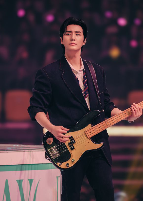 밴드 데이식스(성진 영케이 원필 도운)가 18일 서울 송파구 올림픽 공원 KSPO DOME에서 열린 세 번째 월드 투어 '포에버 영 피날레 인 서울'에서 무대를 선보이고 있다. [사진=JYP엔터테인먼트] |