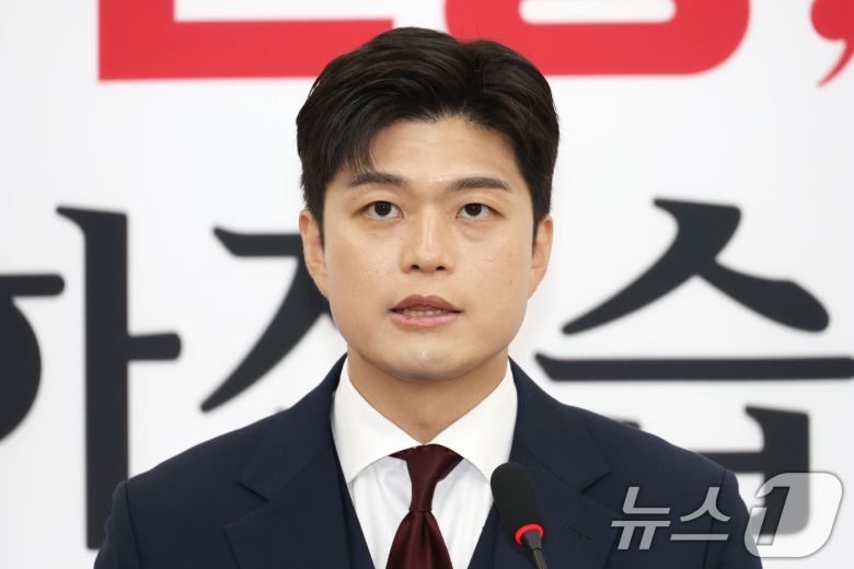김용태 국민의힘 비상대책위원장이 8일 오전 서울 여의도 국회에서 현안 관련 기자회견을 하고 있다. 2025.6.8/뉴스1 ⓒ News1 이광호 기자