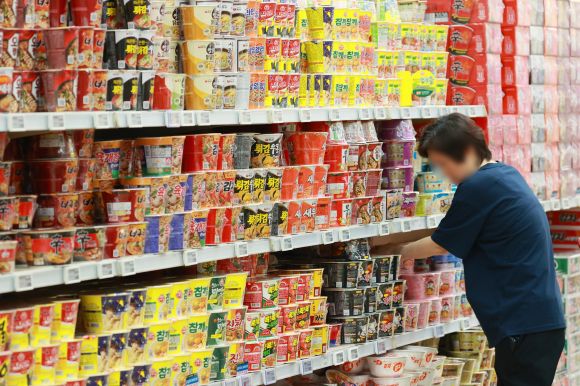 서울의 한 대형마트 라면 판매대. 연합뉴스