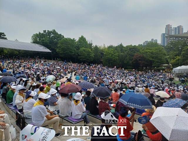 7일 서울 광진구 능동 어린이대공원 야외무대서 진행된 광진구 편 '전국노래자랑' 사전녹화 현장은 유독 후끈했다.