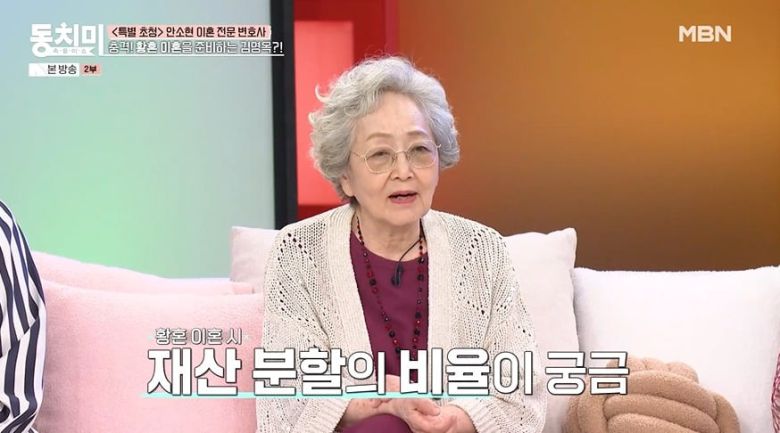 7일 방송된 MBN '속풀이쇼 동치미'에서는 김영옥이 황혼 이혼에 대해 이혼전문 변호사에게 상담을 하는 모습이 그려졌다.