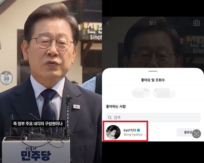 이런 가운데 데뷔 이후 한 번도 정치 관련 이슈에 엮인 적 없었던 송혜교가 이재명 대통령 영상에 좋아요를 눌러 뜨거운 관심을 받는 중이다.