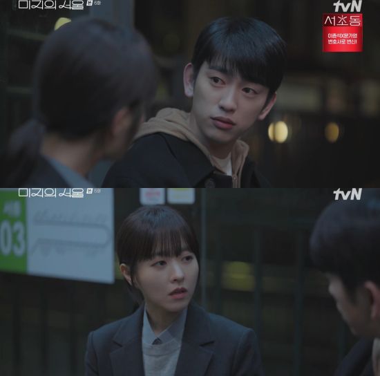 8일 방송된 tvN 토일드라마 '미지의 서울' 6회에서는 유미지(박보영 분)와 이호수(박진영)가 김로사(원미경)를 두고 의견 차이를 나타낸 모습이 그려졌다.