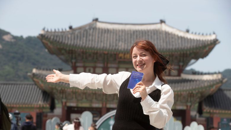 전국 76개 국가유산 코스를 두 달 만에 완주한 터키 여성 쿠베트 아이셰가 서울 경복궁 흥례문을 배경으로 포즈를 취했다. 한국인 남성과 결혼해 한국 이름을 ‘조사랑’으로 지었다는 그는 “한국이 구석구석 얼마나 아름다운지 이번 투어를 통해 실감했다”고 했다. /김지호 기자 |