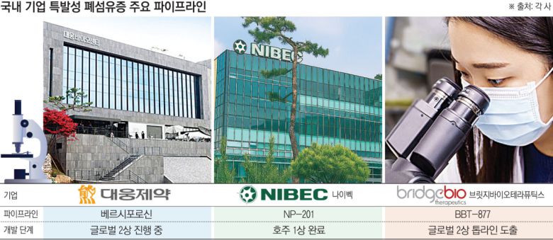 8일 제약·바이오 업계에 따르면 대웅제약, 나이벡, 브릿지바이오테라퓨틱스 등이 특발성 폐섬유증 치료제를 주요 파이프라인으로 개발하고 있다.