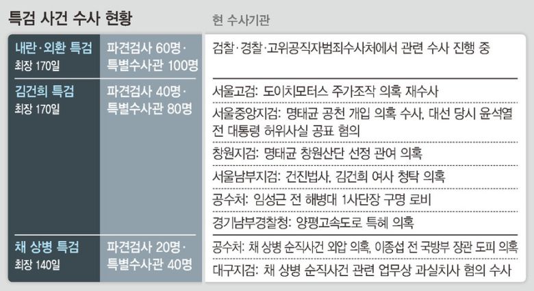 윤석열 전 대통령 부부를 겨냥한 ‘3대 특검법’에는 검찰과 경찰, 고위공직자범죄수사처(공수처)가 진행 중인 수사 대부분이 포함돼 있다. 각 수사기관은 “예정대로 수사한다”는 입장이지만, 내달 초 특검 도입이 가시화된 만큼 수사 속도를 조절할 것으로 보인다.