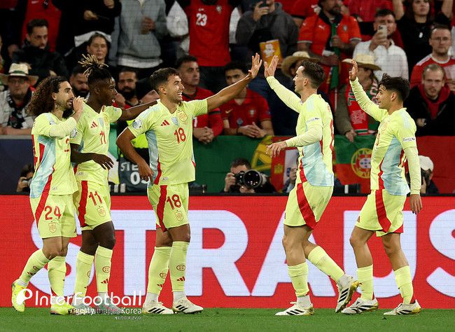 포르투갈은 바로 대응했다. 전반 26분 네투가 내준 패스를 멘데스가 왼발 슈팅으로 마무리해 골망을 흔들었다. 1-1이 된 상황에서 스페인은 계속 두들겼다. 전반 29분 윌리엄스 슈팅은 옆으로 나갔다. 팽팽한 공방전이 이어졌다. 전반 43분 야말 슈팅은 막혔다.