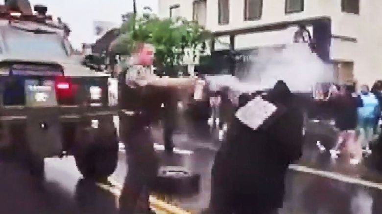 미 연방수사국(FBI) 요원들이 앞을 막아선 시위대에게 최루가스를 뿌려댑니다.