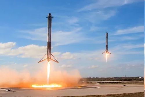 미국 스페이스X의 재사용발사체인 '팔콘 헤비'의 1단 로켓 회수. 스페이스X 제공