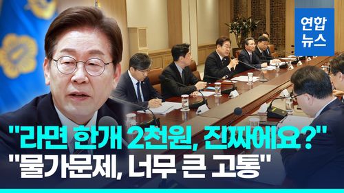 이 대통령은 회의를 시작하면서 "오늘은 그 점을 하나 챙겨봐야겠는데, 최근 물가가 엄청나게 많이 올랐다고 그러더라"며 "라면 한 개에 2천원(도) 한다는데 진짜냐"고 물었습니다.