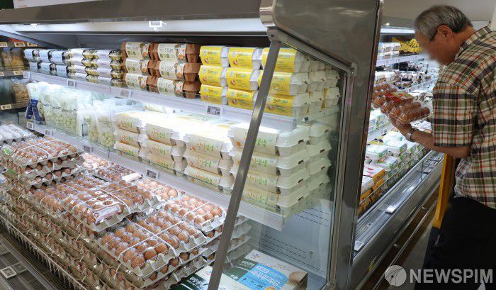 [서울=뉴스핌] 김학선 기자 = 9일 서울시내 한 대형마트를 찾은 소비자가 계란을 고르고 있다. 한국농촌경제연구원(농경연)은 오는 8월까지 석 달간 예측값을 발표하면서 이달 계란 산지 가격이 특란 10개에 1850∼1950원으로 1년 전보다 12.4∼18.5% 오를 것으로 내다봤다. 이미 지난달 평균 계란 소비자 가격은 특란 한 판(30개)에 7026원으로, 4년 만에 7000원을 넘어서며 최고치를 기록한 상태다. 2025.06.09 yooksa@newspim.com