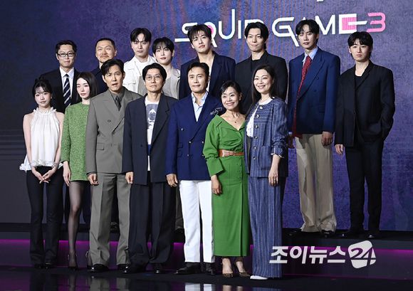 9일 오전 서울 용산구 용산드래곤시티에서 넷플릭스 시리즈 '오징어 게임' 시즌3(감독 황동혁) 제작발표회가 진행됐다. 현장에는 황동혁 감독, 이정재, 이병헌, 임시완, 강하늘, 위하준, 박규영, 이진욱, 박성훈, 양동근, 강애심, 조유리, 채국희, 이다윗, 노재원이 참석했다.