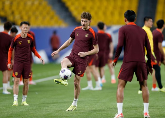 [리야드=신화/뉴시스] 중국 축구 국가대표 선수들이 3월19일(현지 시간) 사우디아라비아 리야드에서 2026 국제축구연맹(FIFA) 북중미 월드컵 아시아 지역 3차 예선 7차전 사우디와의 경기를 앞두고 훈련하고 있다. |