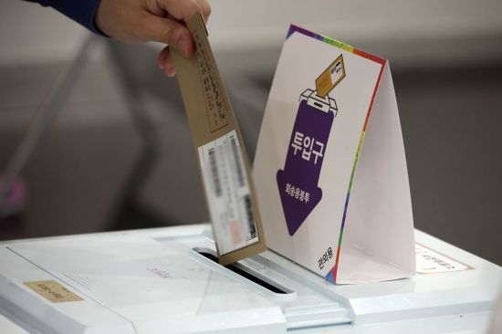 제21대 대통령 선거 사전투표 첫날인 29일 서울 강남구 역삼1동주민센터에 마련된 사전투표소를 찾은 유권자가 소중한 한표를 행사하고 있다. 2025.5.29 조용준 기자