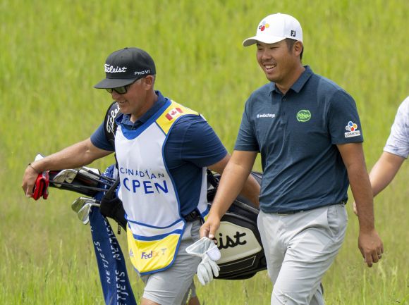 안병훈, RBC 캐나다 오픈 최종 공동 6위 - [칼레돈=AP/뉴시스] 안병훈(오른쪽)이 8일(현지 시간) 캐나다 온타리오주 칼레돈 TPC 토론토 앳 오스프라이 밸리에서 열린 미국프로골프(PGA) 투어 RBC 캐나다오픈 최종 라운드 5번 홀 페어웨이에서 캐디와 함께 걸으며 미소 짓고 있다. 안병훈은 최종 합계 15언더파 265타 공동 6위로 대회를 마쳤다. 2025.06.09. <저작권자ⓒ 공감언론 뉴시스통신사. 무단전재-재배포 금지.> |