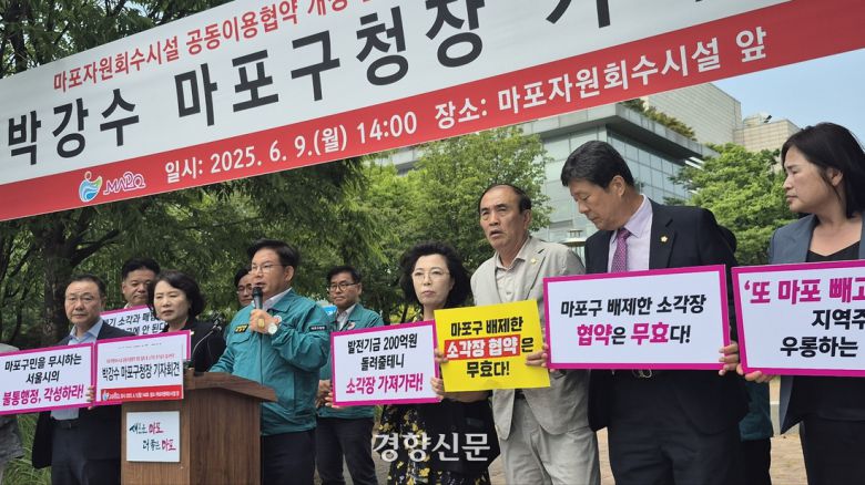 박 구청장은 이날 기자회견에서 “서울시는 절차적 정당성을 무시하며 마포구와 마포구 주민을 배제한 채 ‘마포자원회수시설 공동이용 변경 협약’을 체결했다”며 “이는 지난 세월 서울시를 위해 고통과 희생을 감내해 왔던 마포구 주민들에게 또다시 깊은 충격과 상처를 준 것”이라고 말했다.