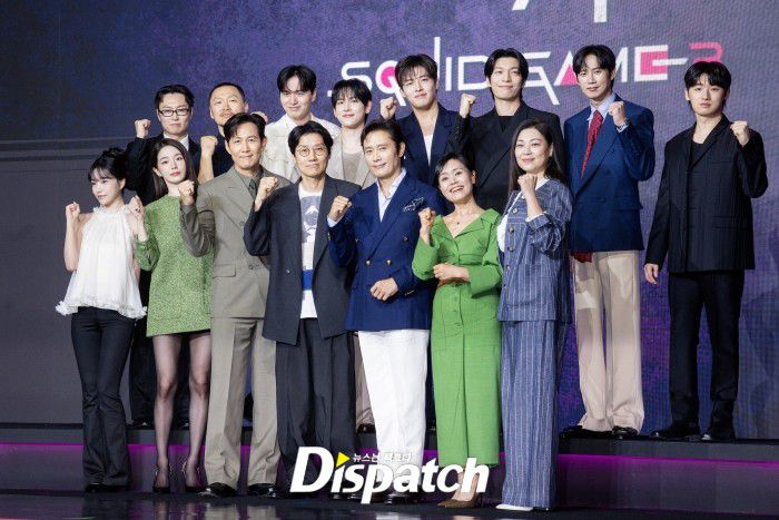 '오징어 게임' 시즌3 측이 9일 서울 용산구 서울드래곤시티에서 제작발표회를 열었다. 황동혁 감독, 배우 이정재, 이병헌, 임시완, 강하늘, 위하준, 박규영, 이진욱, 박성훈, 양동근, 강애심, 조유리, 채국희, 이다윗, 노재원 등이 자리했다.