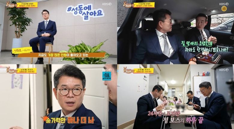 이날 정원오 서울 성동구청장이 ‘뉴 보스’로 등장했다. 서울시에서 유일한 3선 구청장이자 ‘성동구의 아이돌’로 통한다는 정원오 구청장은 비서진들에게 ‘워커홀릭’으로 업무가 많아 제대로 쉬는 날이 없다는 제보가 빗발치면서 원성을 자아냈다.